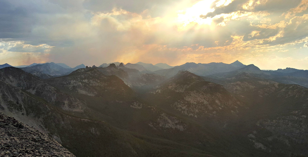 When we woke up in the morning, the world was filled with thick smoke, as we left the Crags and followed the Gant Ridge Trail through the Salmon National Forest, it felt like we were thousands of miles away. Much of the forest had been burned out years before, leaving behind a dead forest of gray trees standing like sentinels along the path, add in the thick smoke and it seemed more like we were in an apocolytic movie set than in a real place in the world.